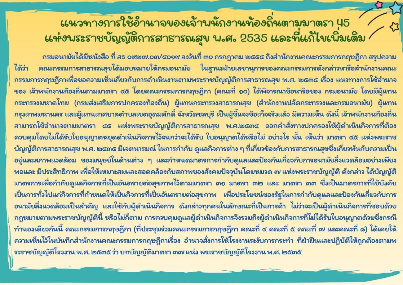 ⚖️ บังคับใช้กฎหมายตาม พระราชบัญญัติการสาธารณสุข พ.ศ. 2535 มาตรา 20(1)