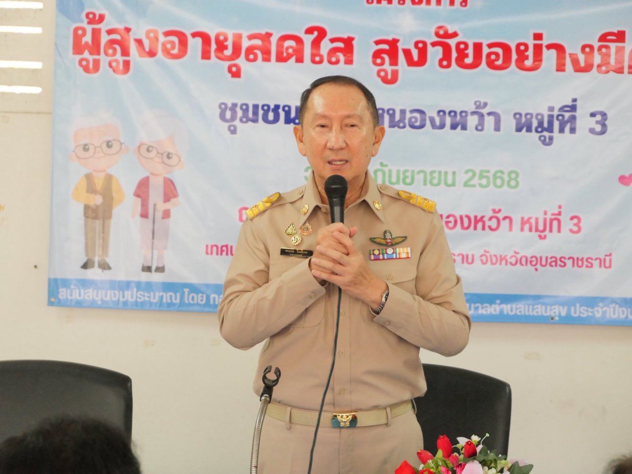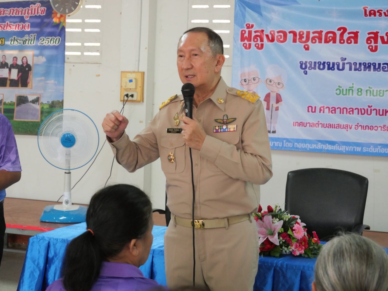 นายทรงกรด ไกรกังวาร นายกเทศมนตรีตำบลแสนสุข เป็นประธานเปิดโครงการ “ผู้สูงอายุสดใส สูงวัยอย่างมีคุณค่า ” หมู่ที่ 3 บ้านหนองหว้า ต.แสนสุข อ.วารินชำราบ จ. อุบลราชธานี มอบงบประมาณสนับสนุน จำนวน 10,000- บาท จากกองทุนหลักประกันสุขภาพระดับท้องถิ่น เทศบาลตำบลแสนสุข ไว้สำหรับบริหารจัดการโครงการฯ โดยมี....สมาชิกสภาเทศบาล ,เจ้าหน้าที่จากกองสาธารณสุขและสิ่งแวดล้อม ภาคีเครือข่ายที่เกี่ยวข้อง ร่วมเป็นเกียรติ