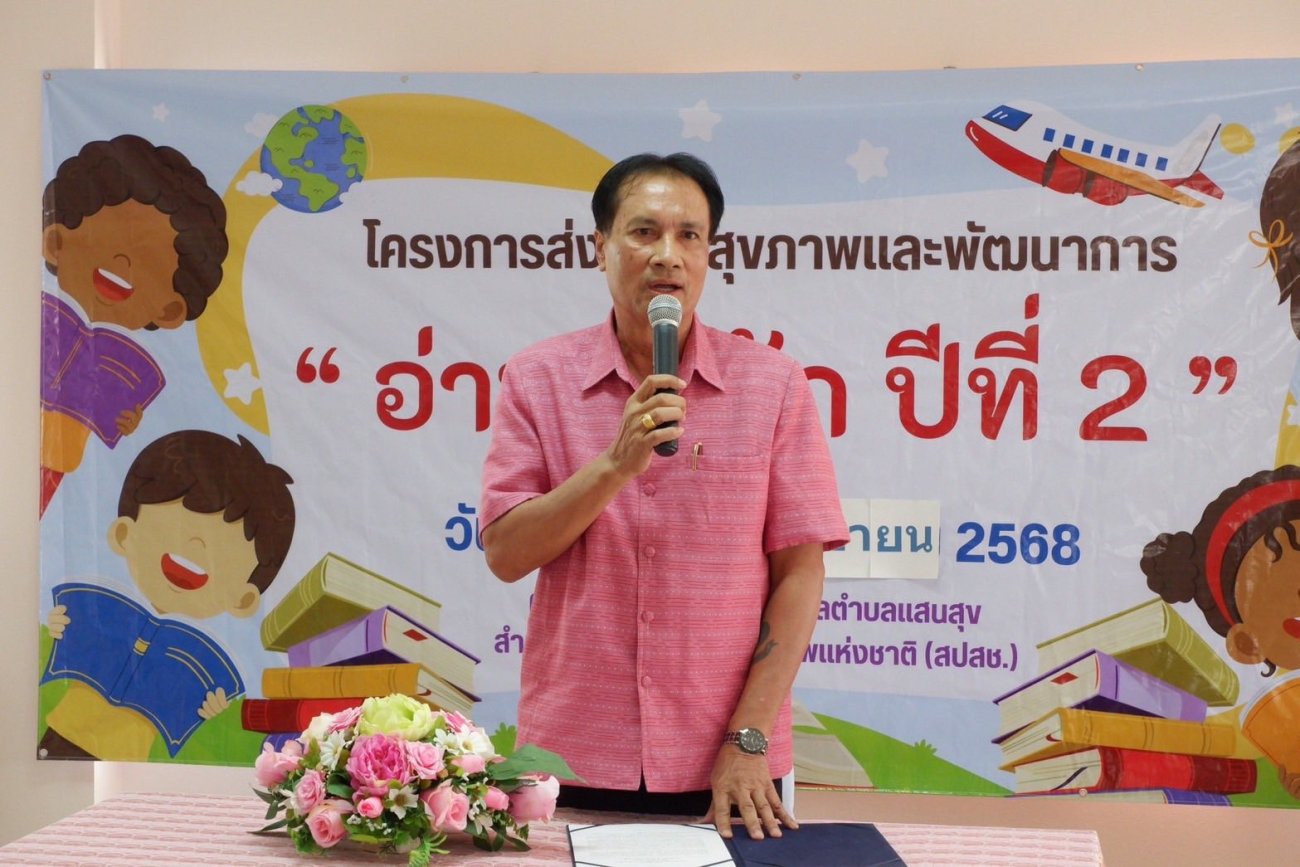 นายทรงกรด ไกรกังวาร นายกเทศมนตรีตำบลแสนสุข มอบหมายให้ นายศตนันท์ ธรรมสาร รองนายกเทศมนตรีตำบลแสนสุข พร้อมด้วยสมาชิกสภาเทศบาล เจ้าหน้าที่กองสาธารณสุขและสิ่งแวดล้อม มอบเงินสนับสนุนโครงการส่งเสริมสุขภาพและพัฒนาการ อ่านอุ่นรัก ปีที่ 2 ณ ศูนย์พัฒนาเด็กเล็ก เทศบาลตำบลแสนสุข ต.แสนสุข อ.วารินชำราบ จ.อุบลราชธานี โดยได้รับการสนับสนุนงบประมาณ จากกองทุนหลักประกันสุขภาพระดับท้องถิ่นเทศบาลตำบลแสนสุข เป็นเงิน 10,000 บาท (หนึ่งหมื่นบาทถ้วน)