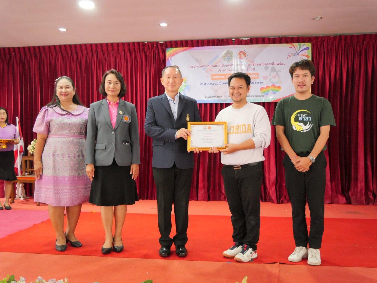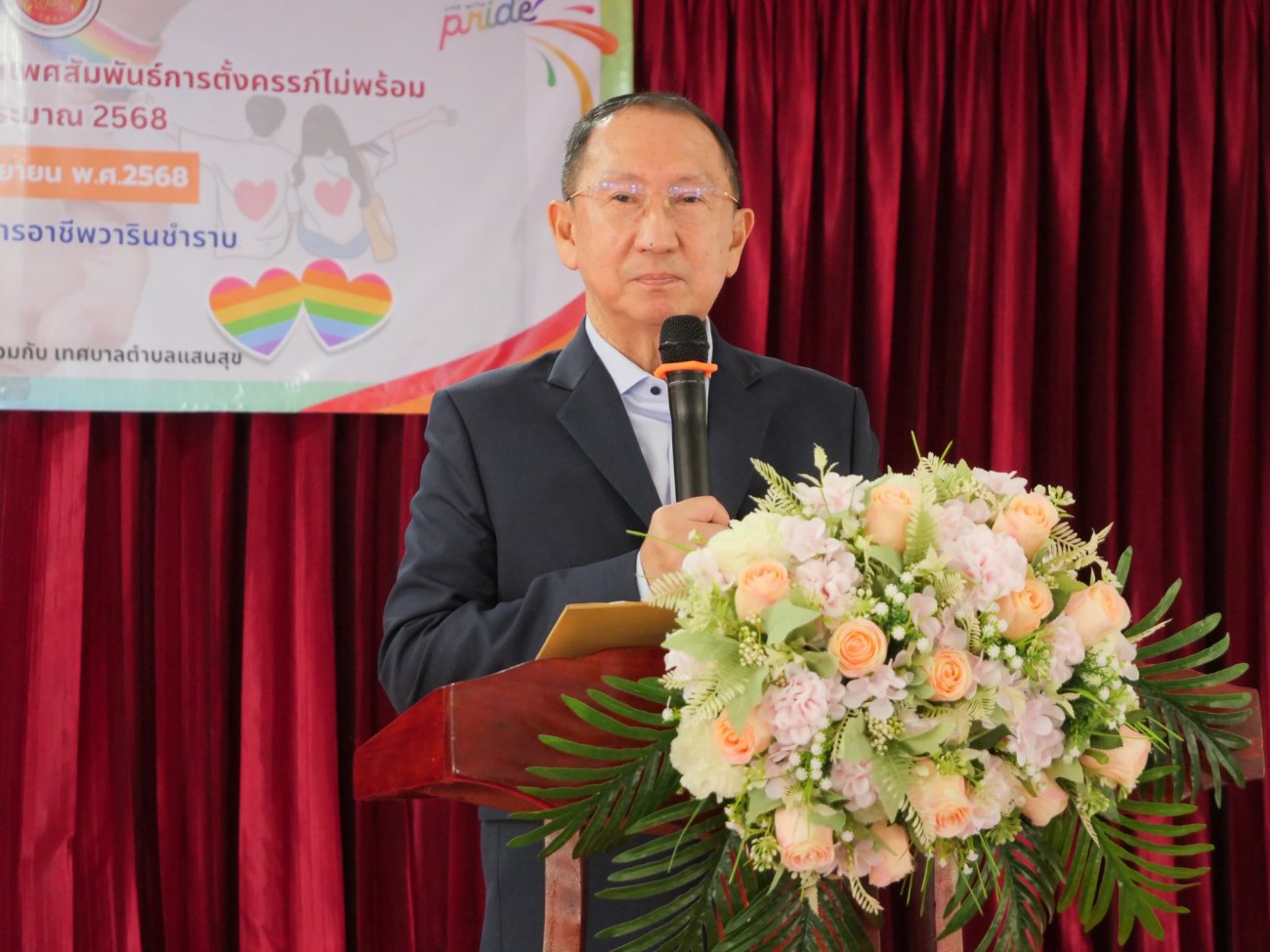 นายทรงกรด ไกรกังวาร นายกเทศมนตรีตำบลแสนสุข พร้อมด้วยสมาชิกสภาเทศบาล เจ้าหน้าที่จากกองสาธารณสุขและสิ่งแวดล้อม ร่วมเป็นเกียรติพร้อมกับมอบเงินสนับสนุนโครงการป้องกันและลดปัญหาด้านเพศสัมพันธ์การตั้งครรภ์ไม่พร้อม ประจําปีงบประมาณ 2568 ให้กับวิทยาลัยการอาชีพวารินชำราบ ต.แสนสุข อ.วารินชำราบ จ.อุบลราชธานี