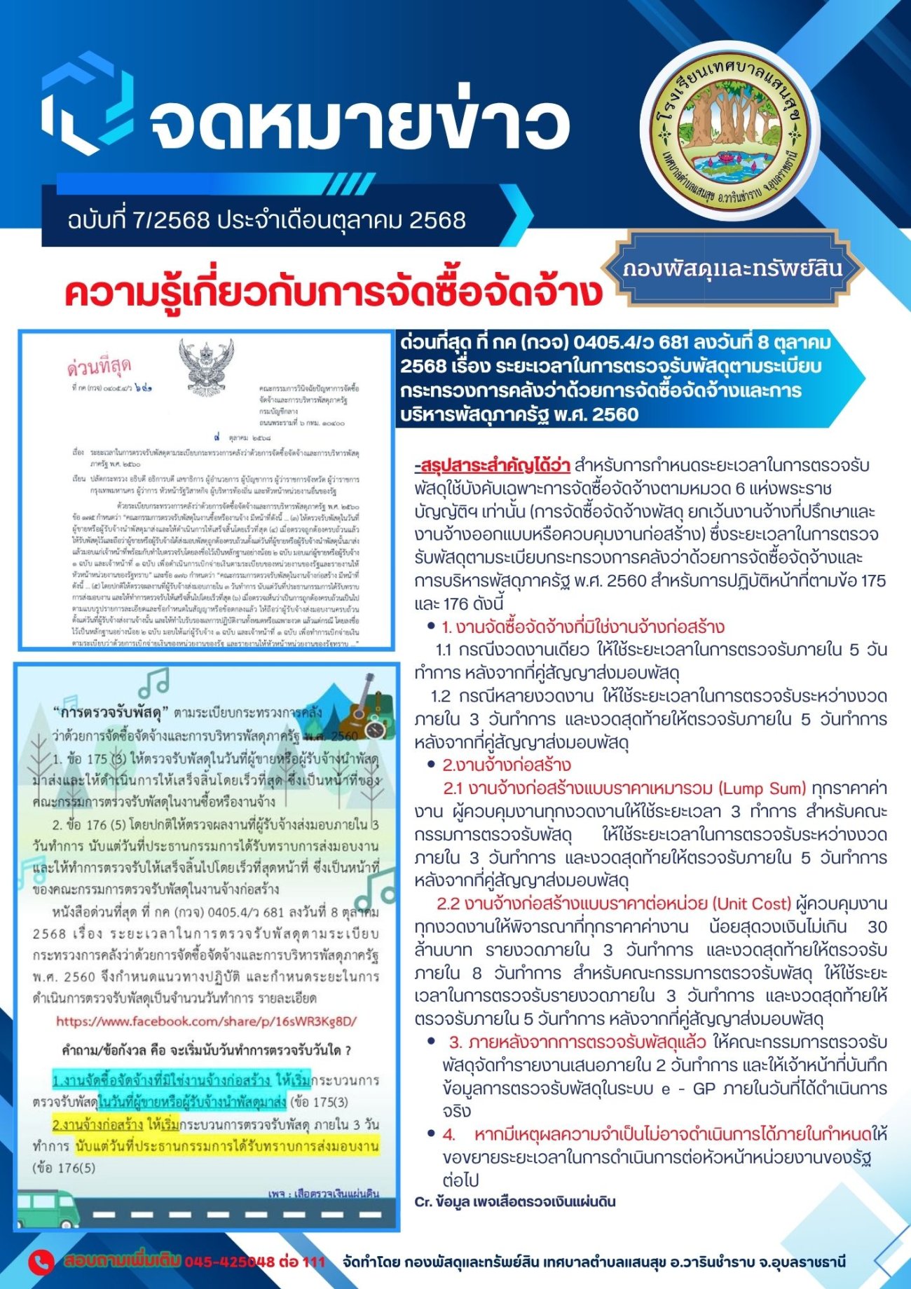จดหมายข่าวประชาสัมพันธ์"กองพัสดุและทรัพย์สิน"ประจำเดือนตุลาคม 2568