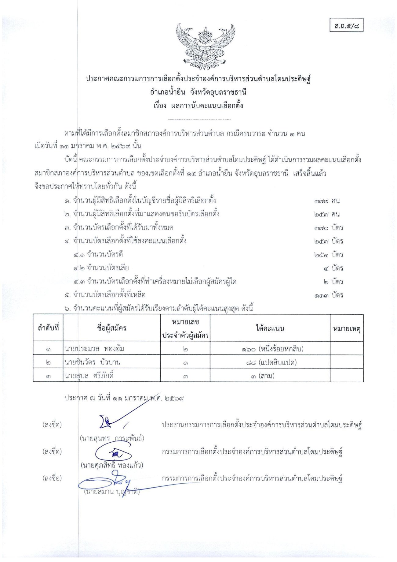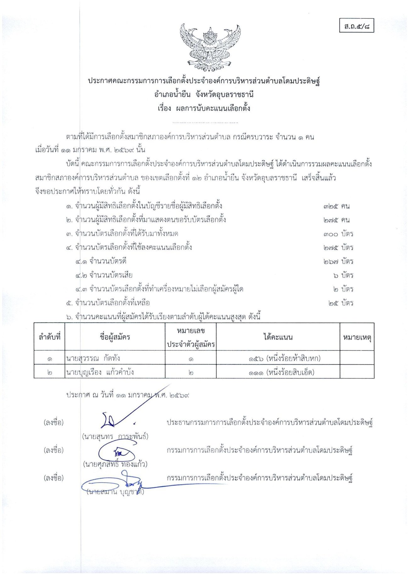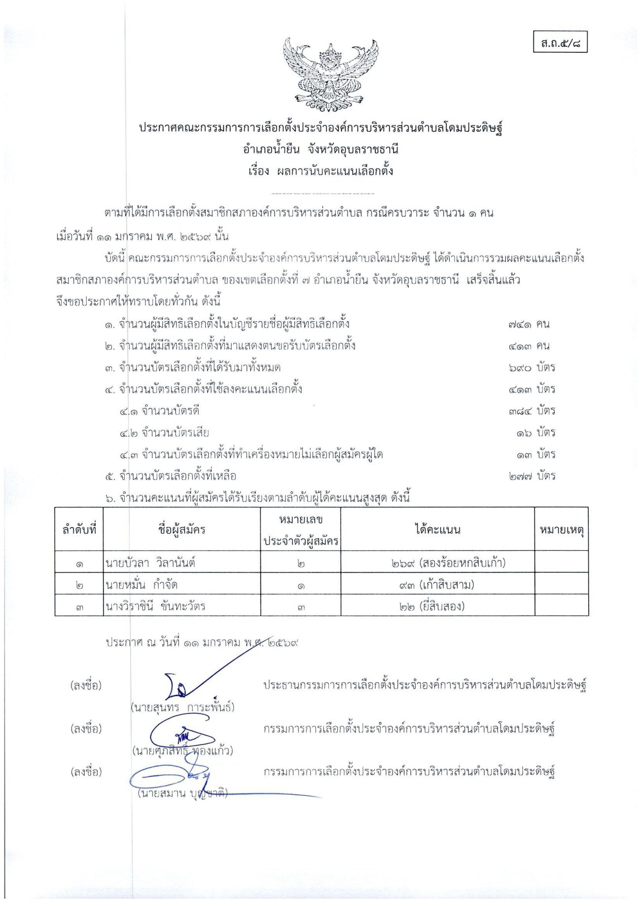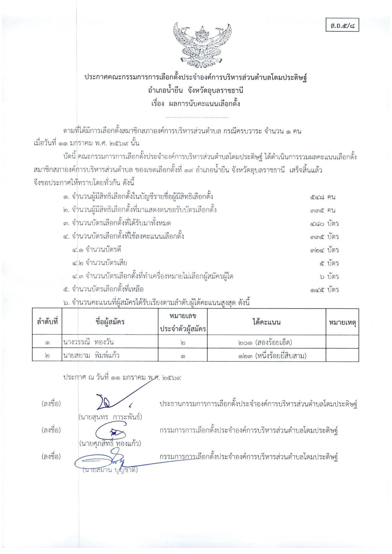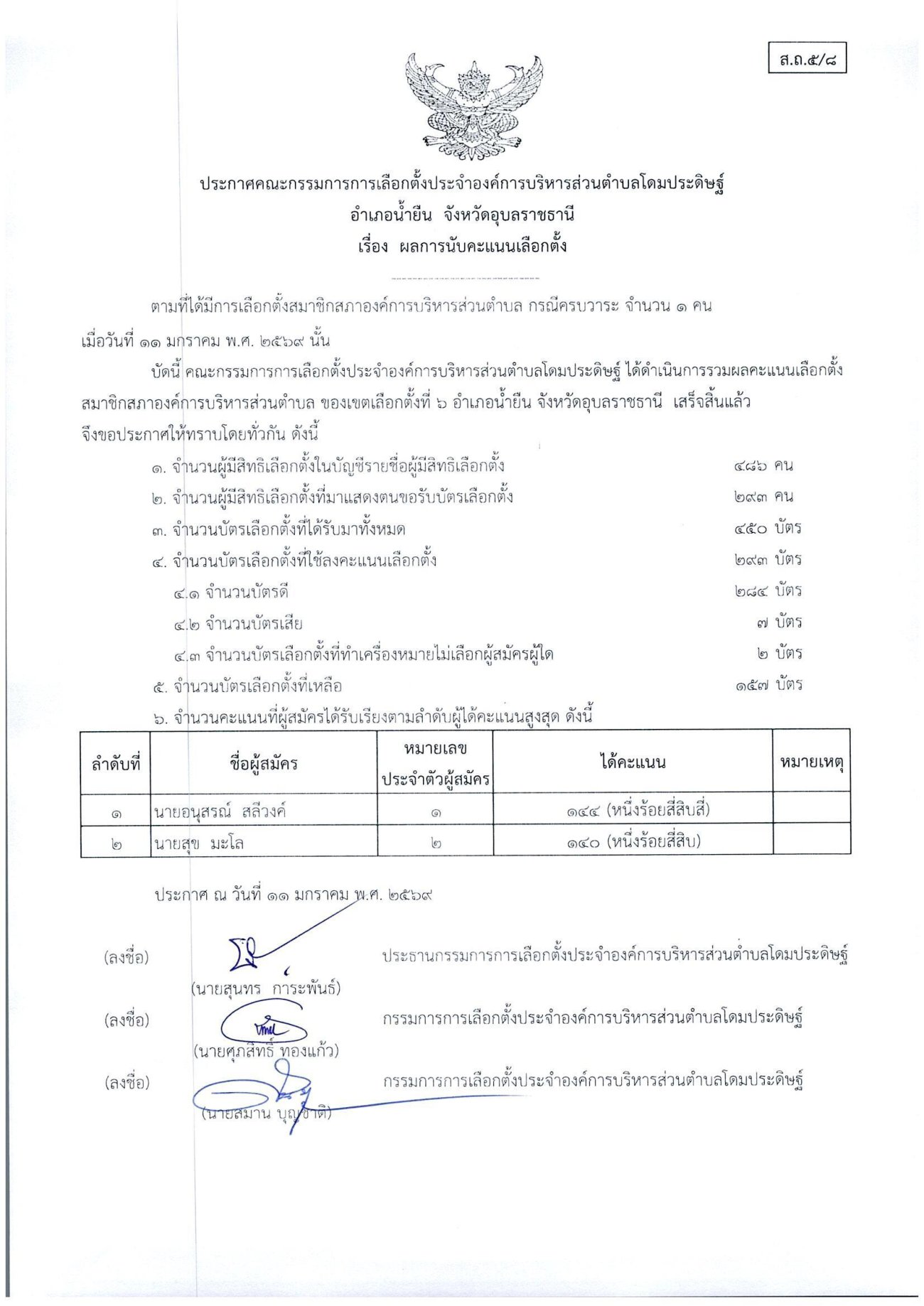 ภาพที่เกี่ยวข้อง ประกาศเรื่องผลการนับคะแนนเลือกตั้งสมาชิกสภาองค์การบริหารส่วนตำบลโดมประดิษฐ์