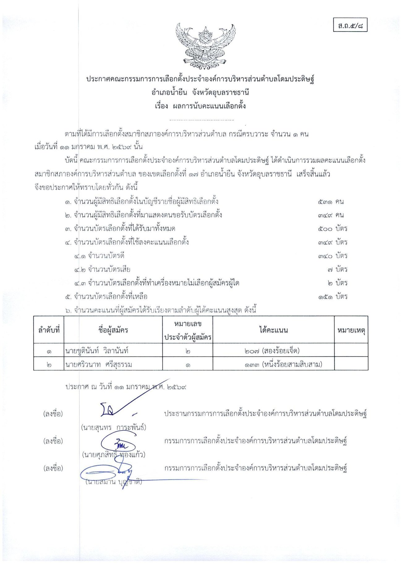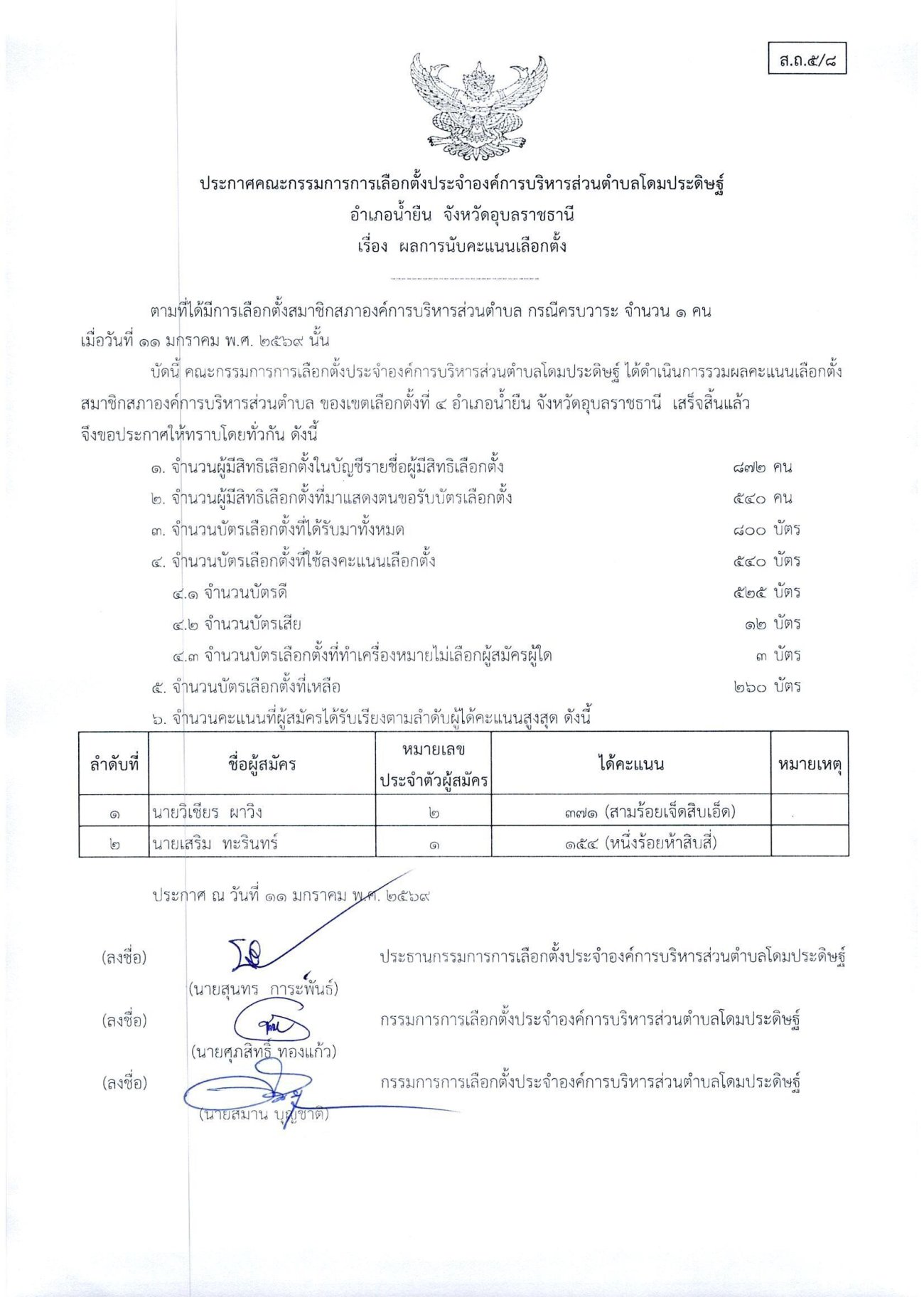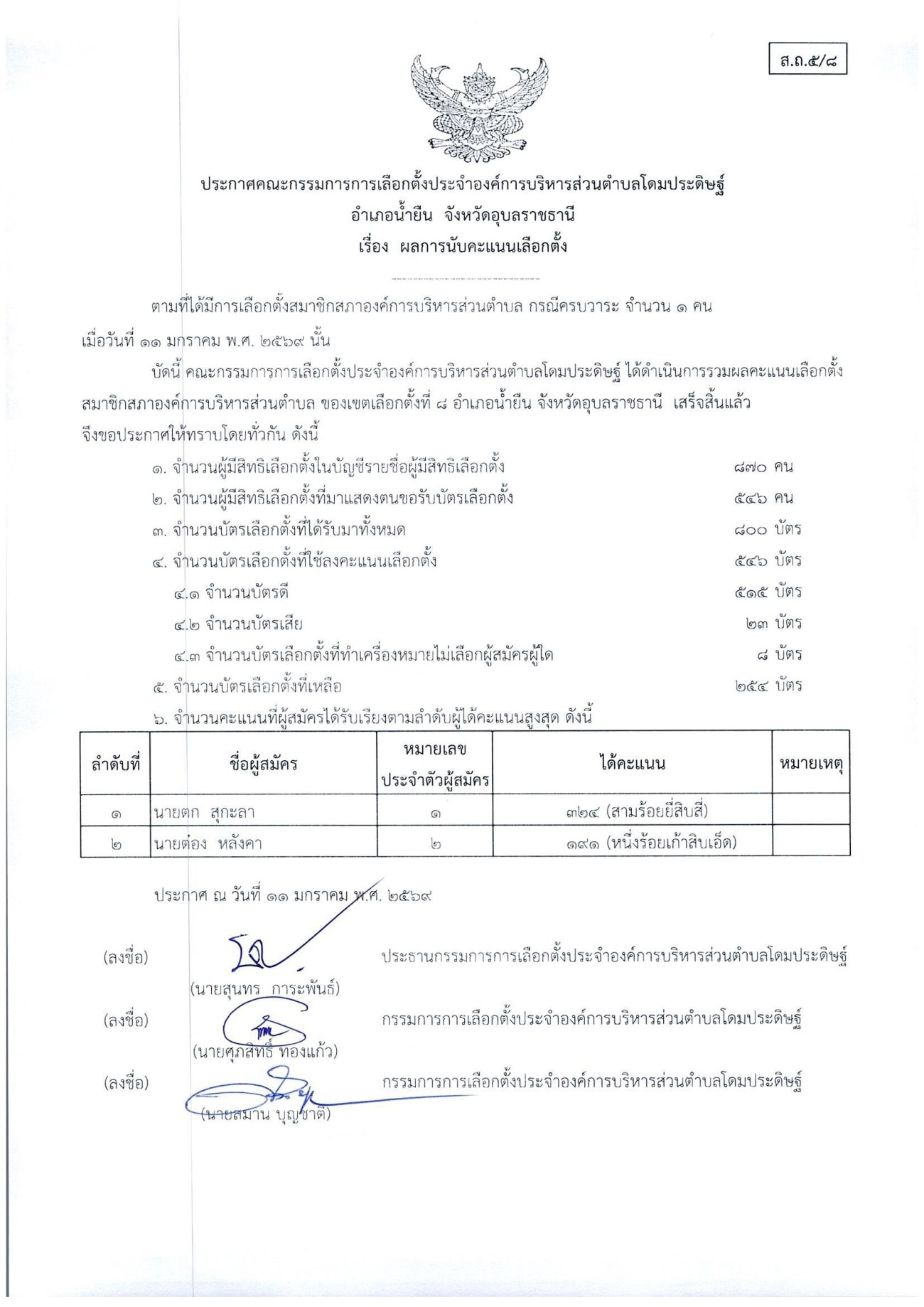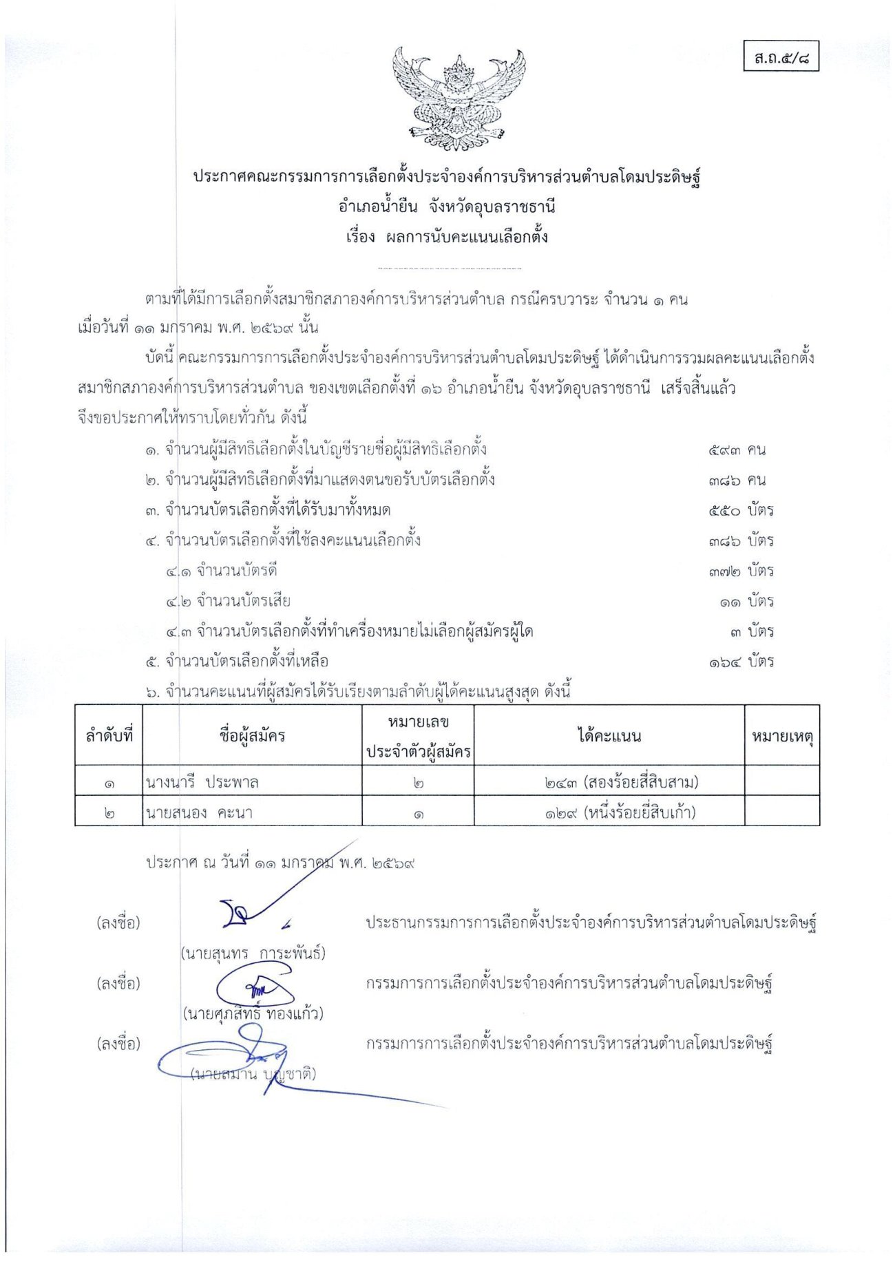 ภาพที่เกี่ยวข้อง ประกาศเรื่องผลการนับคะแนนเลือกตั้งสมาชิกสภาองค์การบริหารส่วนตำบลโดมประดิษฐ์