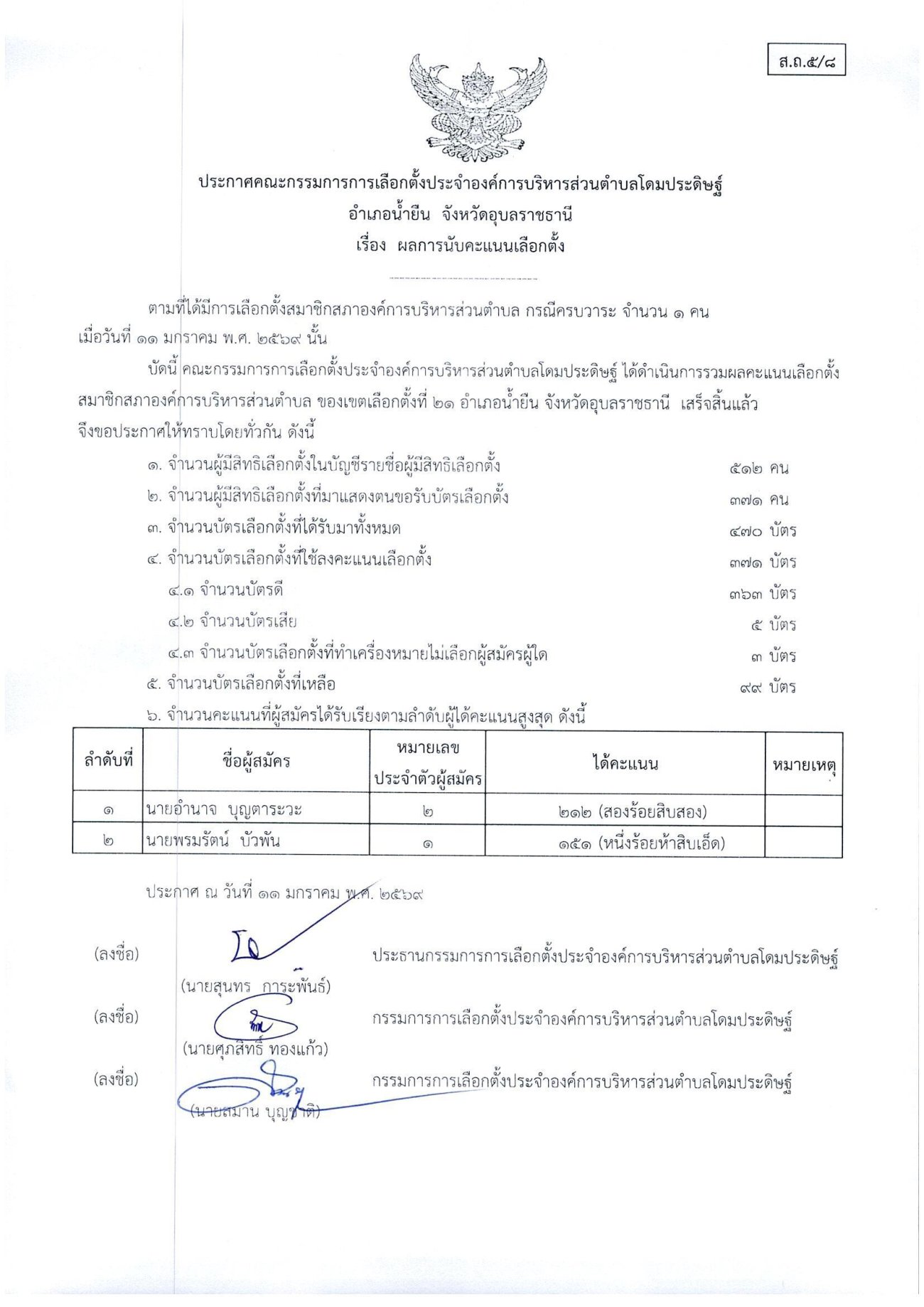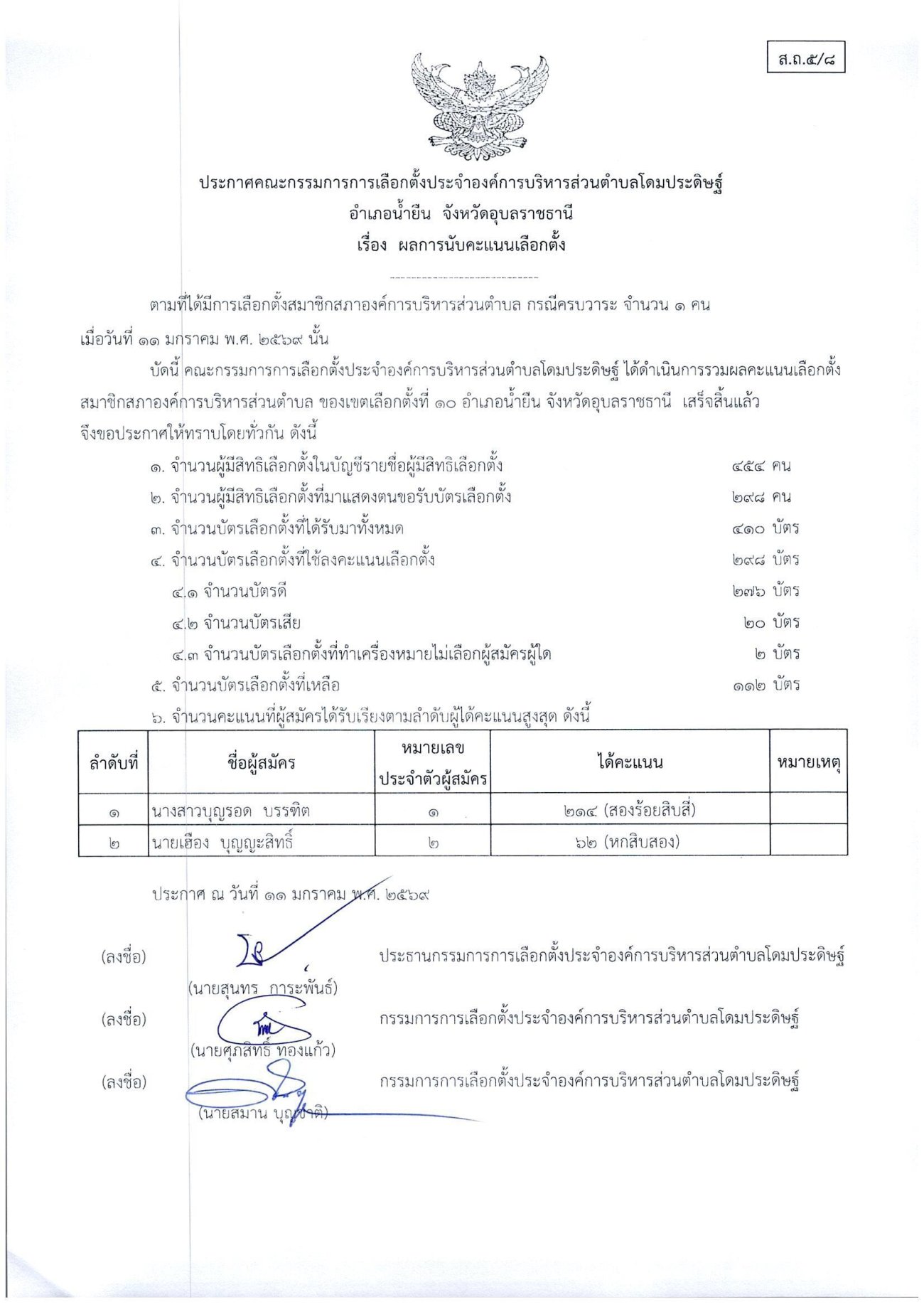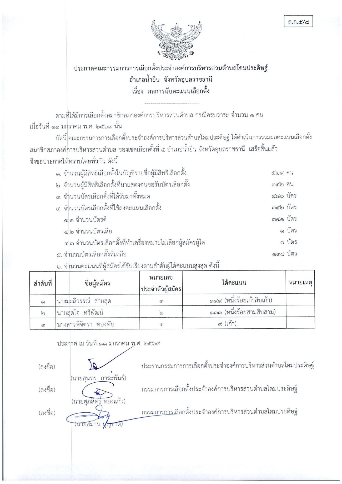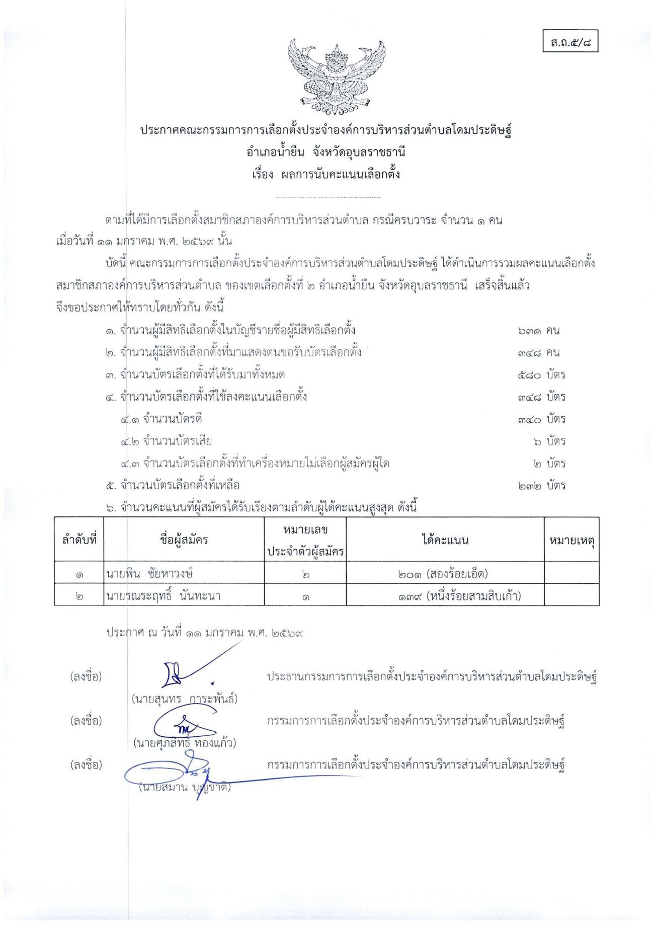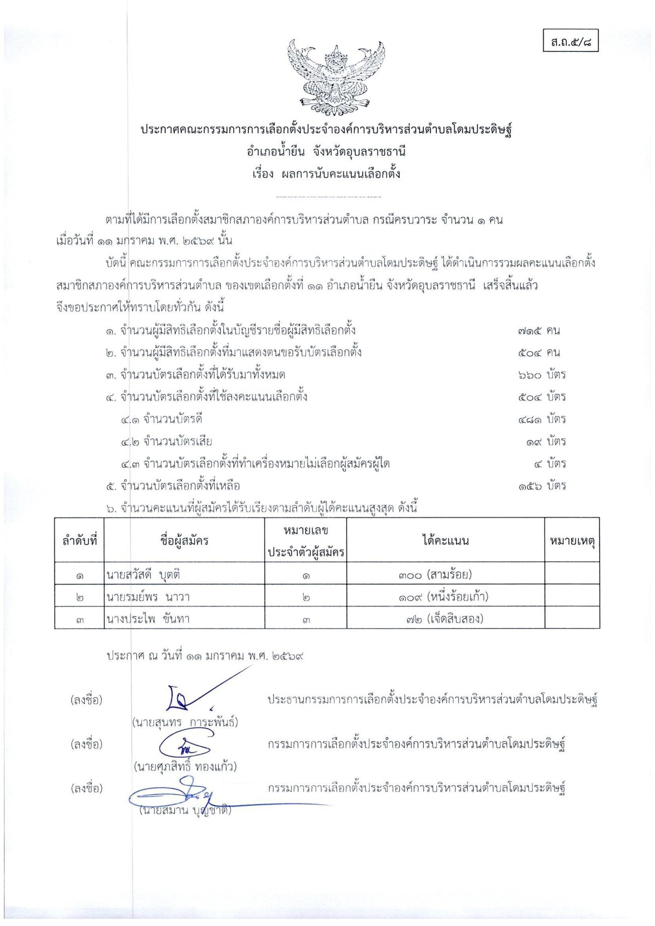 ภาพที่เกี่ยวข้อง ประกาศเรื่องผลการนับคะแนนเลือกตั้งสมาชิกสภาองค์การบริหารส่วนตำบลโดมประดิษฐ์