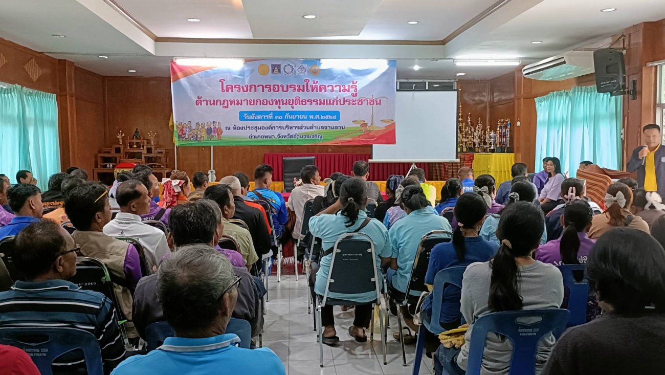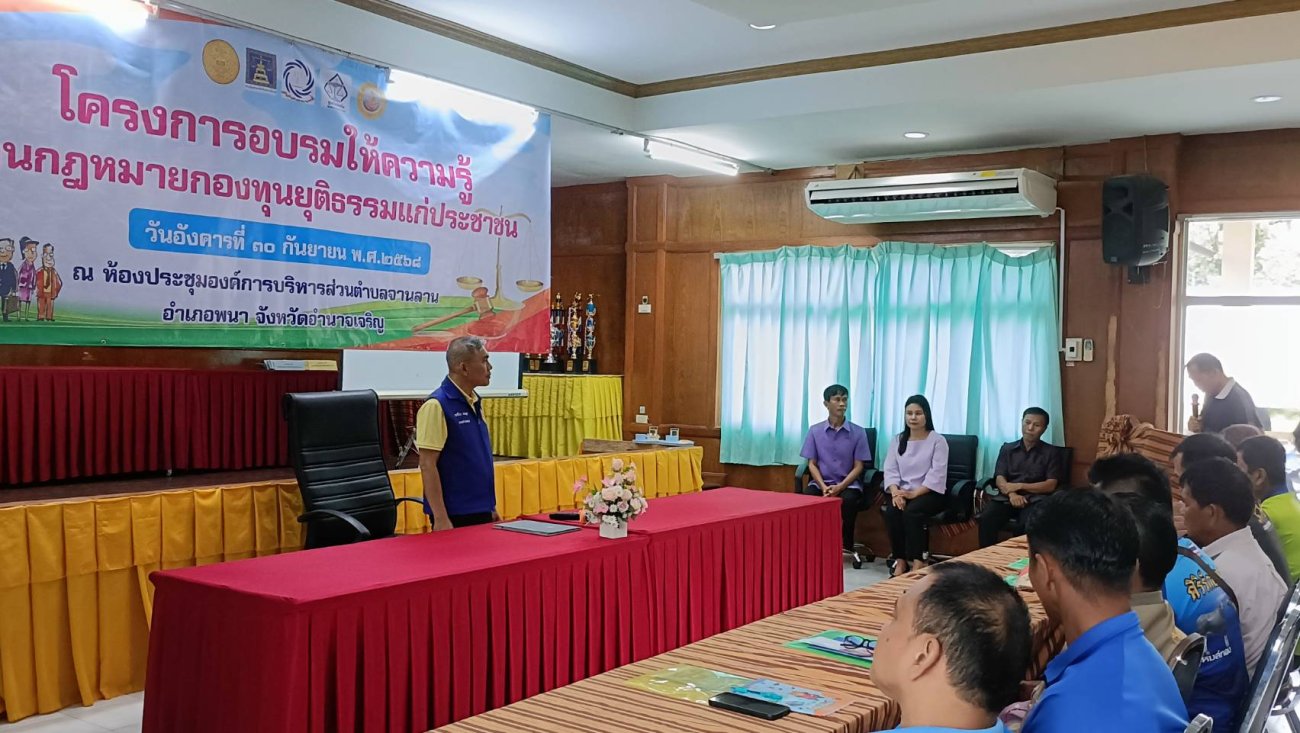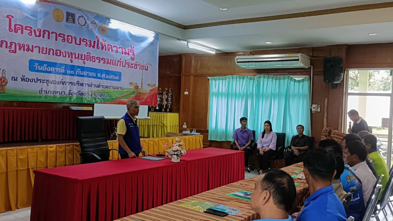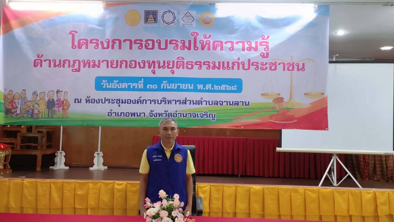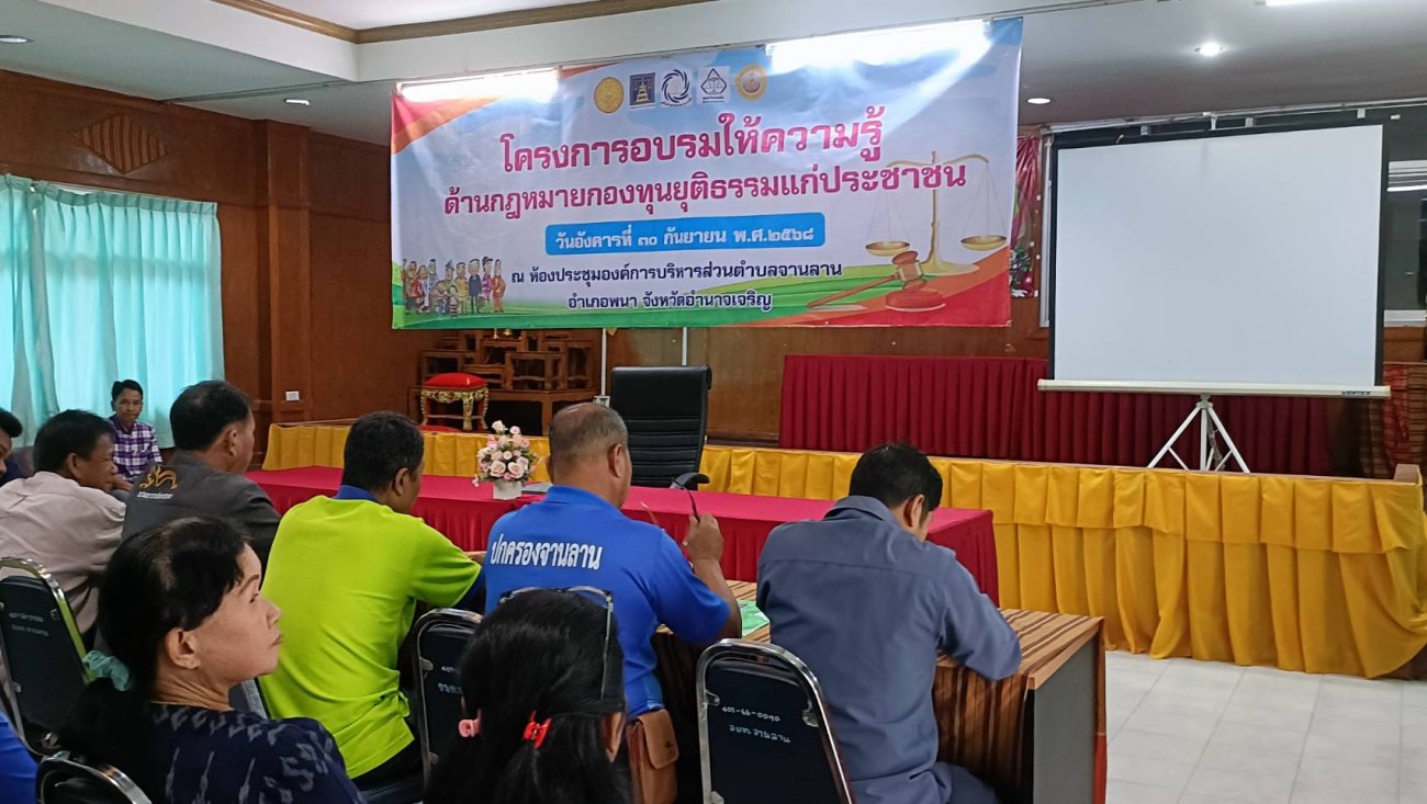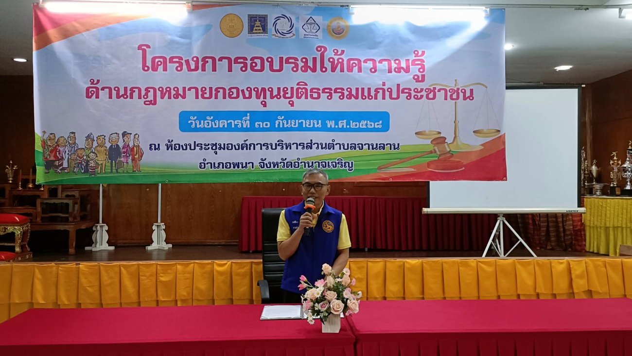 30 กันยายน 2568 เวลา 09.00 น. ณ หอประชุมสภาองค์การบริหารส่วนตำบลจานลาน นายฤทธิไกร สายสุด นายอำเภอพนา เป็นประธาน พิธีเปิดโครงการอบรมให้ความรู้ด้านกฎหมายกองทุนยุติธรรมแก่ประชาชน โดย สำนักงานยุติธรรมจังหวัดอำนาจเจริญ ร่วมกับ องค์การบริหารส่วนตำบลจานลาน และ ศูนย์ไกล่เกลี่ยข้อพิพาทภาคประชาชนจัดโครงการอบรมให้ความรู้ด้านกฎหมายกองทุนยุติธรรมแก่ประชาชน โดยมีวัตุประสงค์เพื่อส่งเสริมประชาชนและสนับสนุนประชาชนได้รับความรู้ด้านกฎหมาย สามารถเข้าถึงกระบวนการยุติธรรม ลดความเหลื่อมล้ำทางสังคม ตลอดจนส่งเสริมให้ศุนย์ไกล่เกลี่ยข้อพิพาทภาคประชาชน สามารถดำเนินการไกล่เกลี่ยข้อพิพาท ได้อย่างเป็นระบบและมีมาตรฐานตามพระราชบัญญัติการไกล่เกลี่ยข้อพิพาท พ.ศ. 2562 โดยมีผู้เข้าร่วมโครงการฯ ประกอบด้วยผู้นำชุมชน อาสาสมัครสาธารณสุขและประชาชนในพื้นที่ตำบลจานลาน จำนวน 100 คน