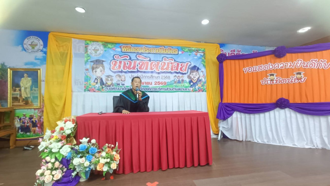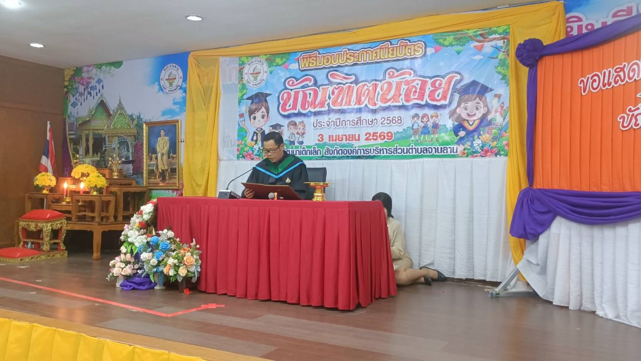 3 เมษายน 2569 เวลา 09.00 น. ณ ห้องประชุมสภาองค์การบริหารส่วนตำบลจานลาน องค์การบริหารส่วนตำบลจานลาน ได้จัดพิธีมอบวุฒิบัตรแก่เด็กนักเรียนที่ผ่านการเตรียมความพร้อมระดับปฐมวัย ประจำปีการศึกษา 2568 เพื่อแสดงความยินดีและเป็นการสร้างขวัญกำลังใจให้แก่เด็กเล็กที่สำเร็จการศึกษาในระดับปฐมวัย ซึ่งถือเป็นช่วงวัยสำคัญในการวางรากฐานด้านพัฒนาการทั้งทางร่างกาย อารมณ์ สังคม และสติปัญญา โดยได้รับเกียรติจาก นายสมหมาย ศิริอนันต์ นายกองค์การบริหารส่วนตำบลจานลาน เป็นประธานในพิธีมอบวุฒิบัตร พร้อมทั้งกล่าวให้โอวาทแก่เด็กเล็ก เพื่อเป็นแนวทางในการศึกษาในระดับที่สูงขึ้นต่อไปภายในงานมีผู้ปกครอง คณะครู และบุคลากรองค์การบริหารส่วนตำบลจานลาน เข้าร่วมแสดงความยินดี บรรยากาศเต็มไปด้วยความรัก ความภาคภูมิใจ และรอยยิ้มของเด็ก ๆ องค์การบริหารส่วนตำบลจานลาน ขอแสดงความยินดีกับเด็กเล็กทุกคนที่สำเร็จการศึกษาในครั้งนี้ และขอเป็นกำลังใจให้เติบโตเป็นคนดี มีคุณภาพของสังคมต่อไป